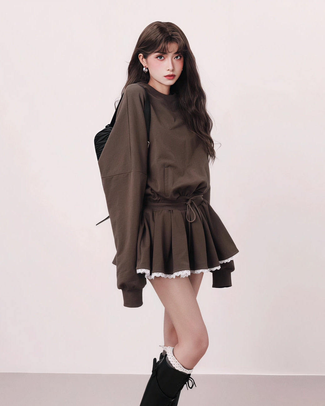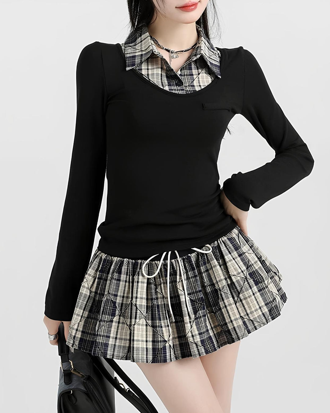ウエストマークでメリハリがついて、スタイルアップ見えが叶います✨