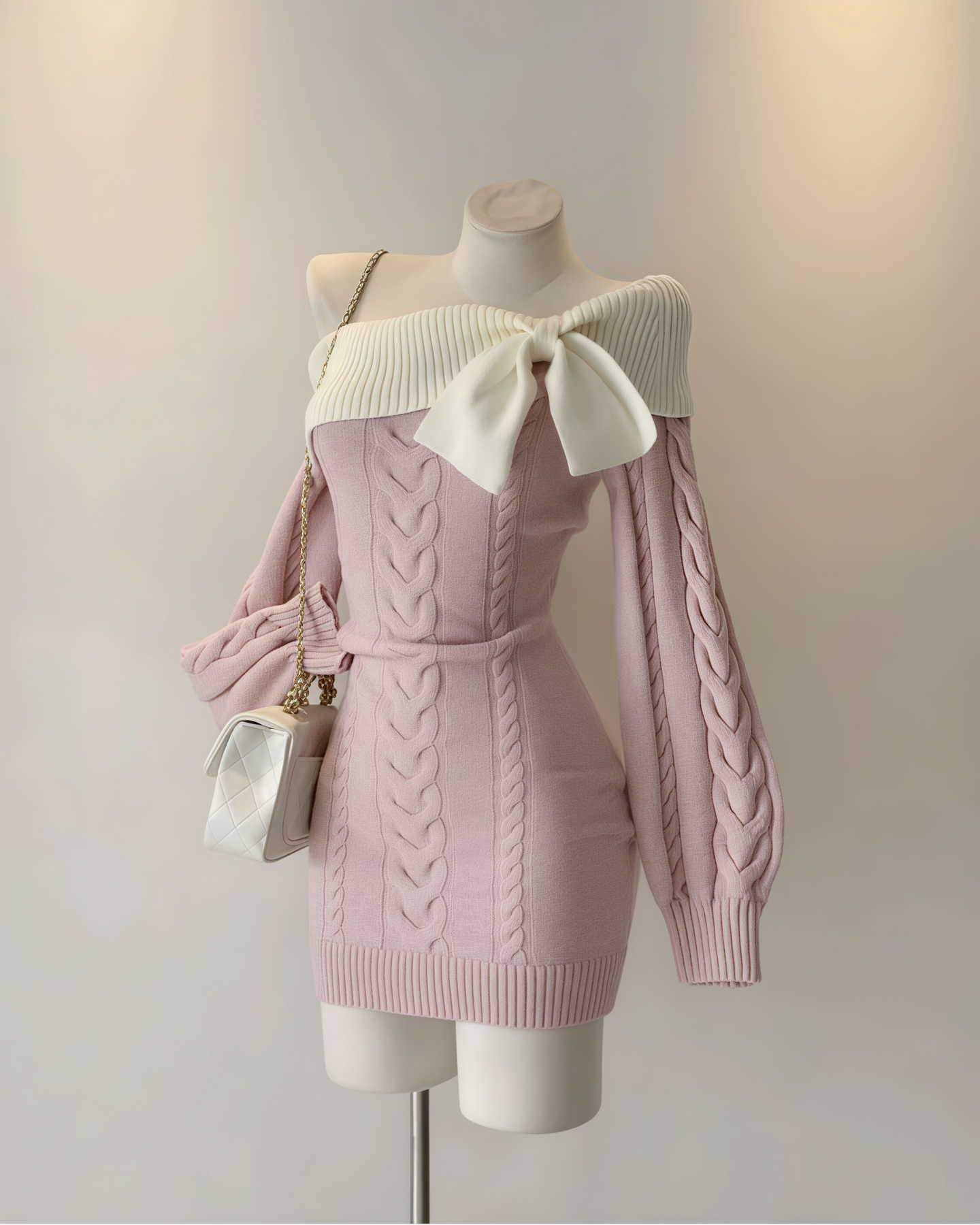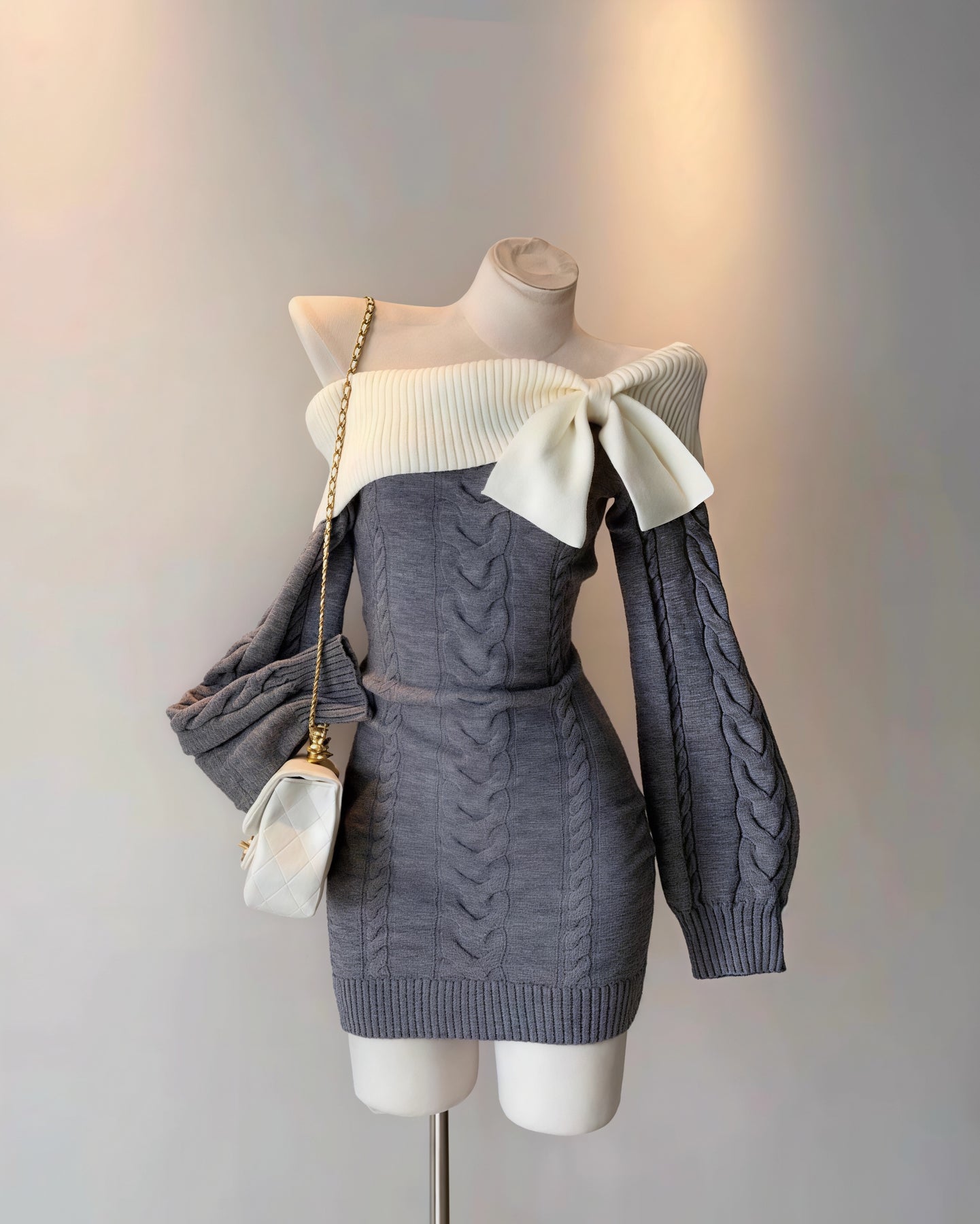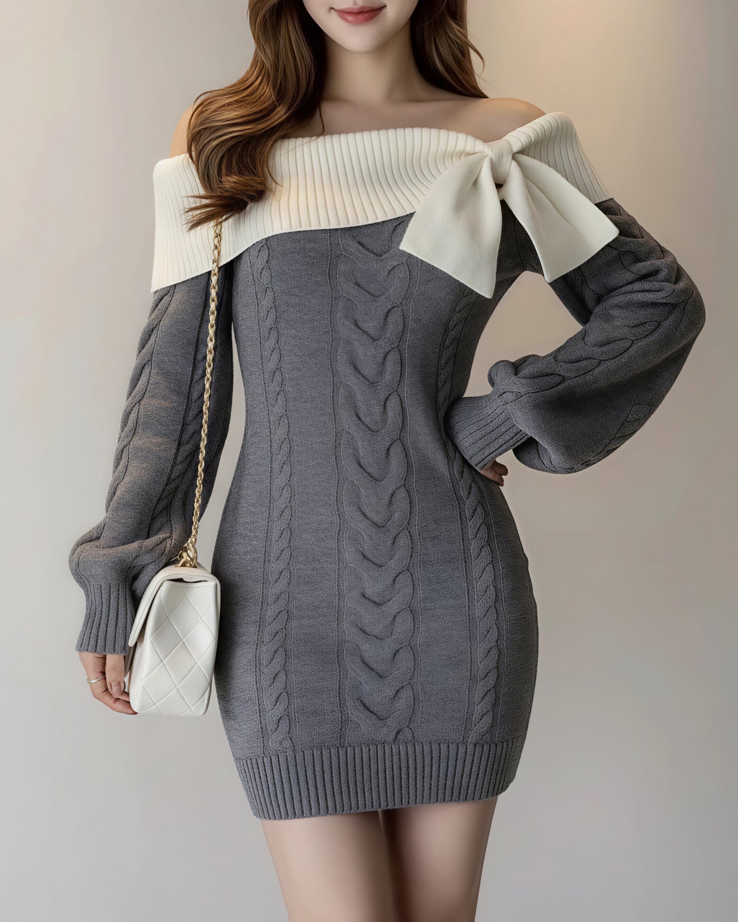 ざっくり編みのケーブルニットが、女性らしさを引き立てるニットワンピ♡
