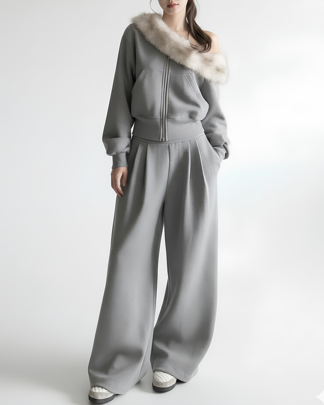 フリル・ニットなど、視線を上に集めるデザインが特に似合います。