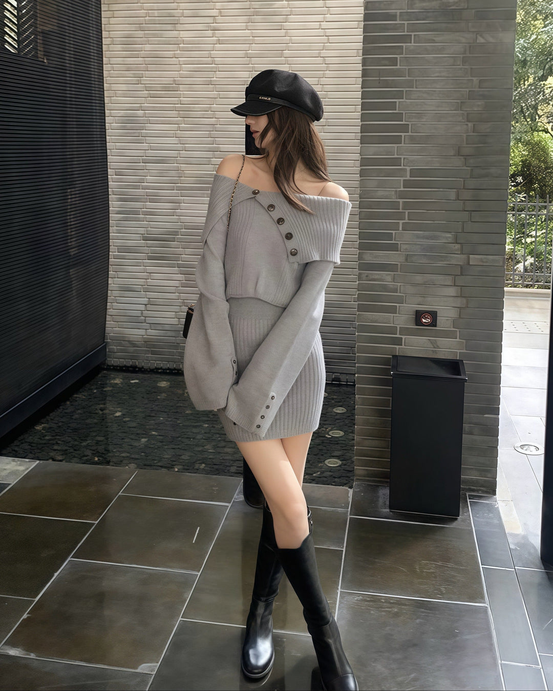 胸元をスッキリ縦に開けるとGood。VでもUでもOK。