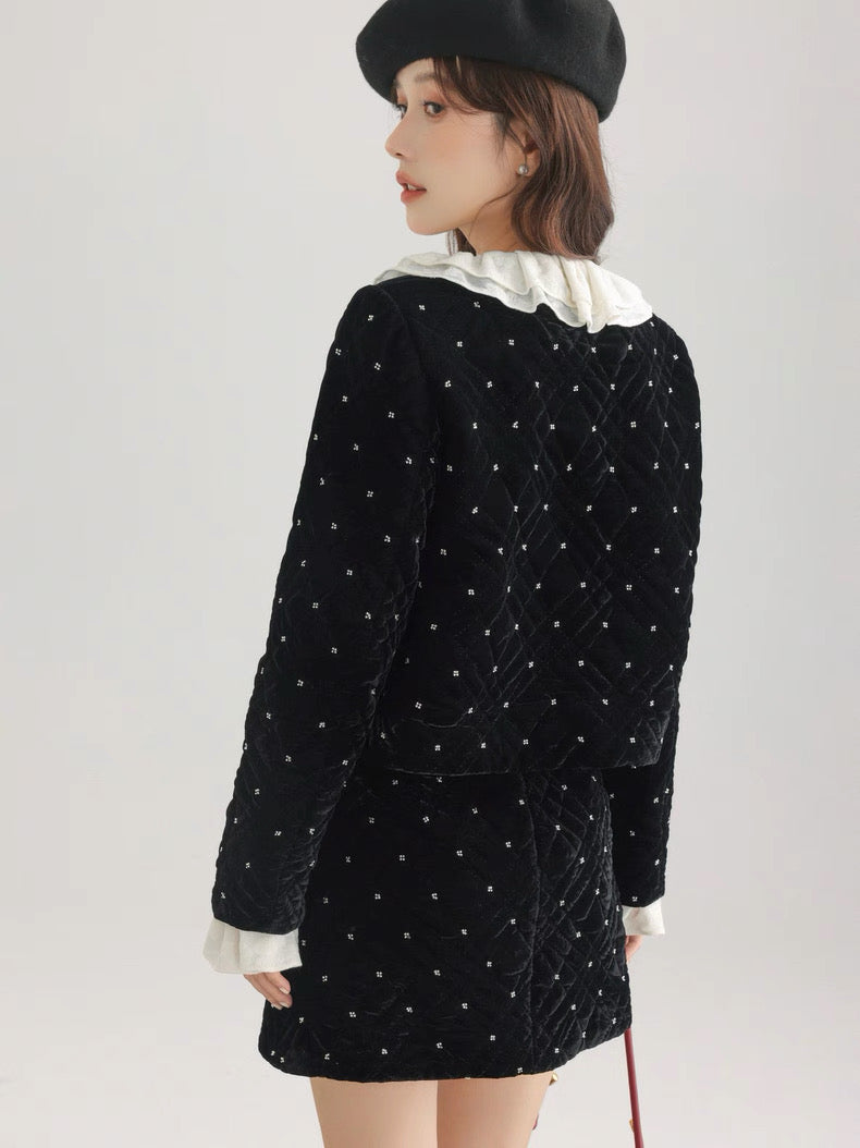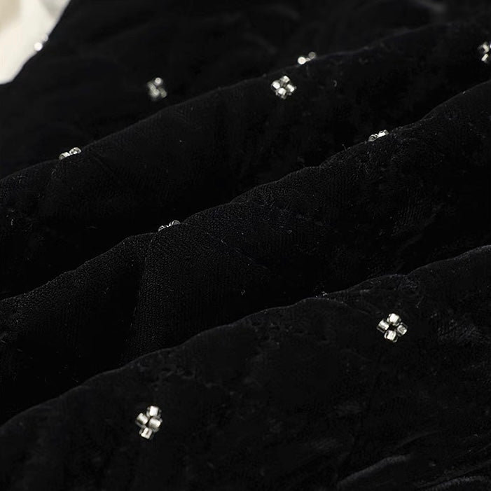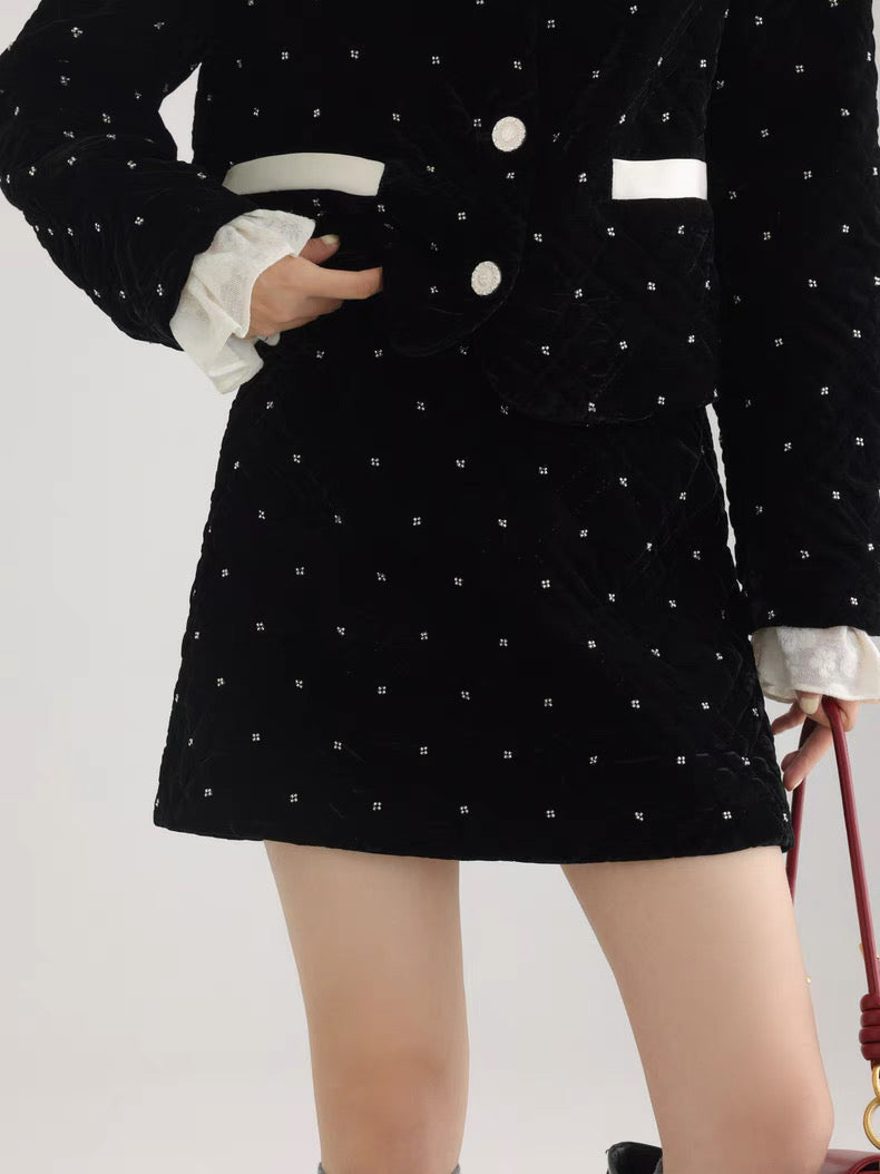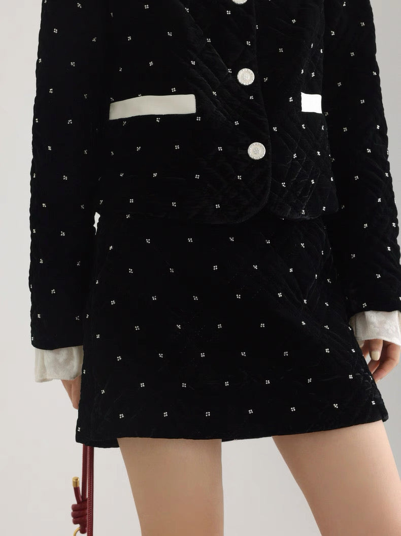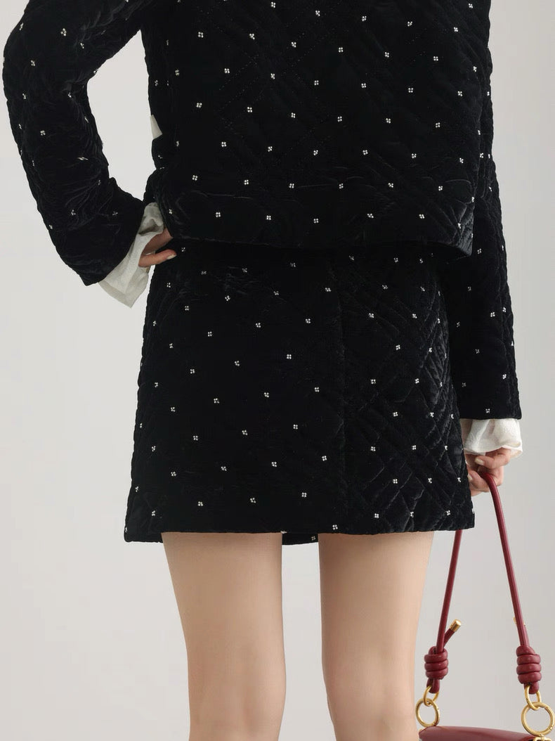 ベルベット調の生地に細かなビジューでドットをあしらった、