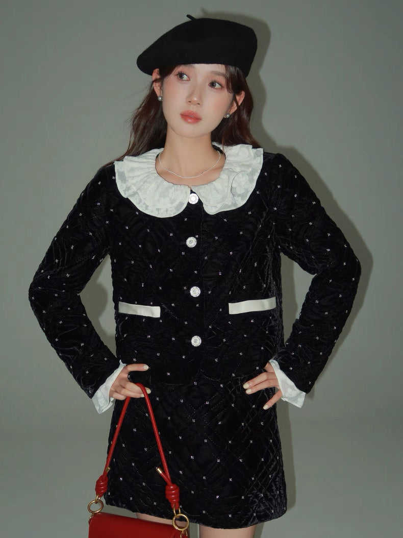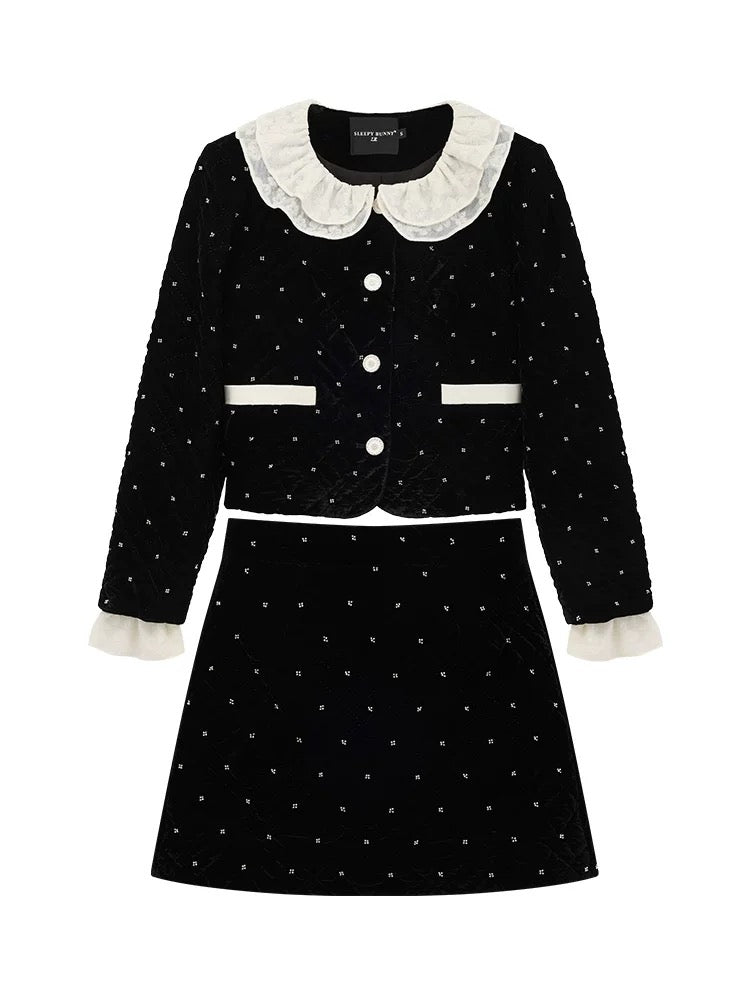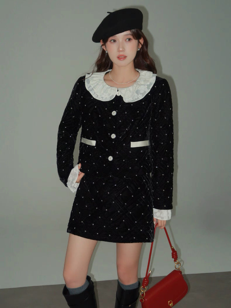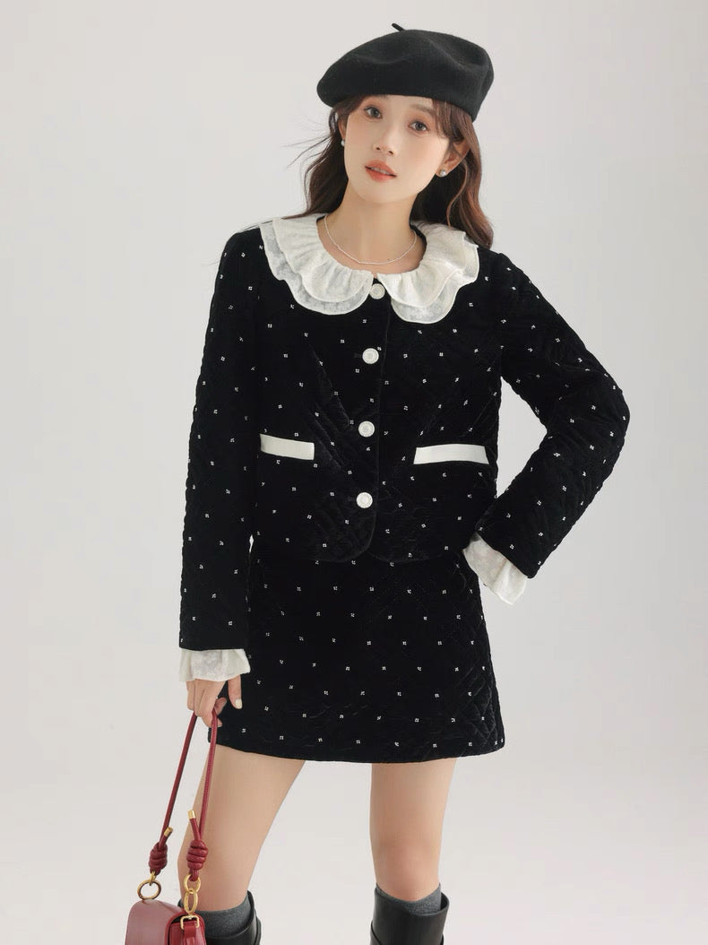 ベルベット調の生地に細かなビジューでドットをあしらった、