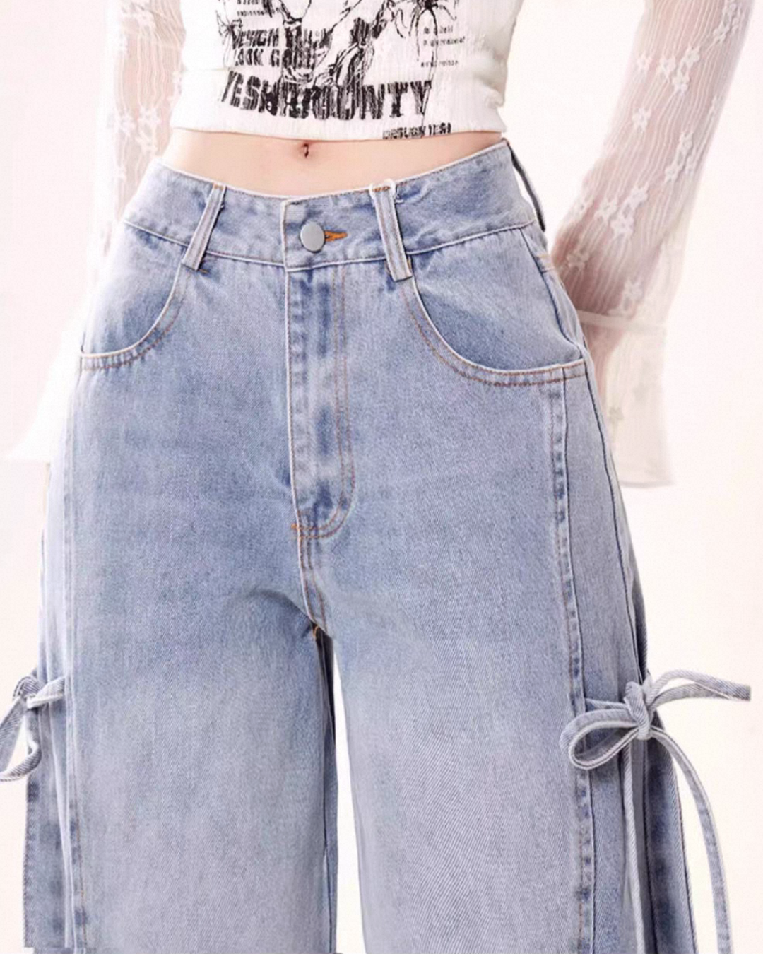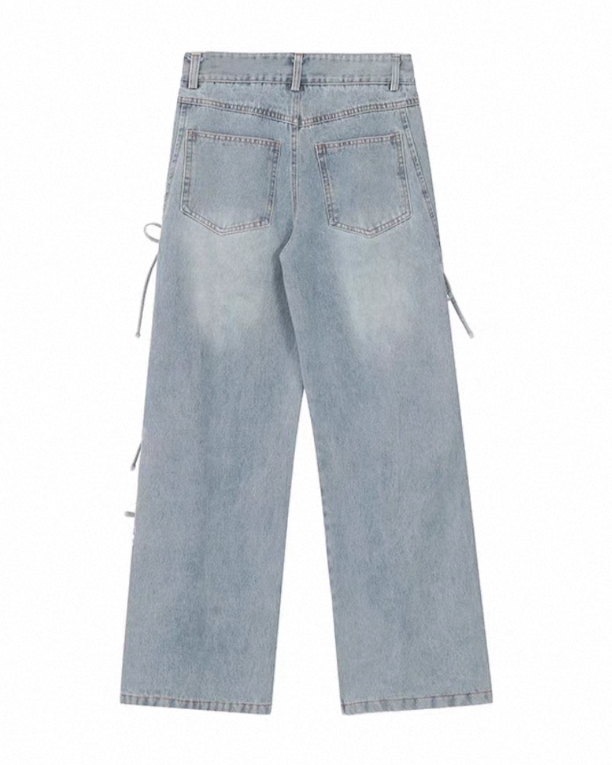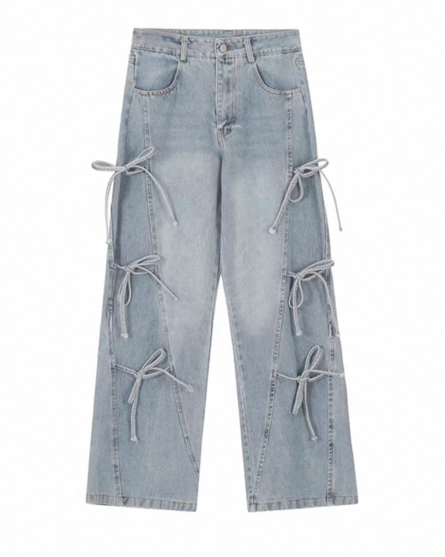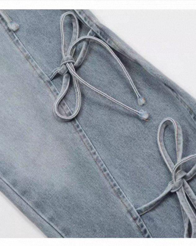 リボンレースアップ ワイドデニムパンツ Mc 739