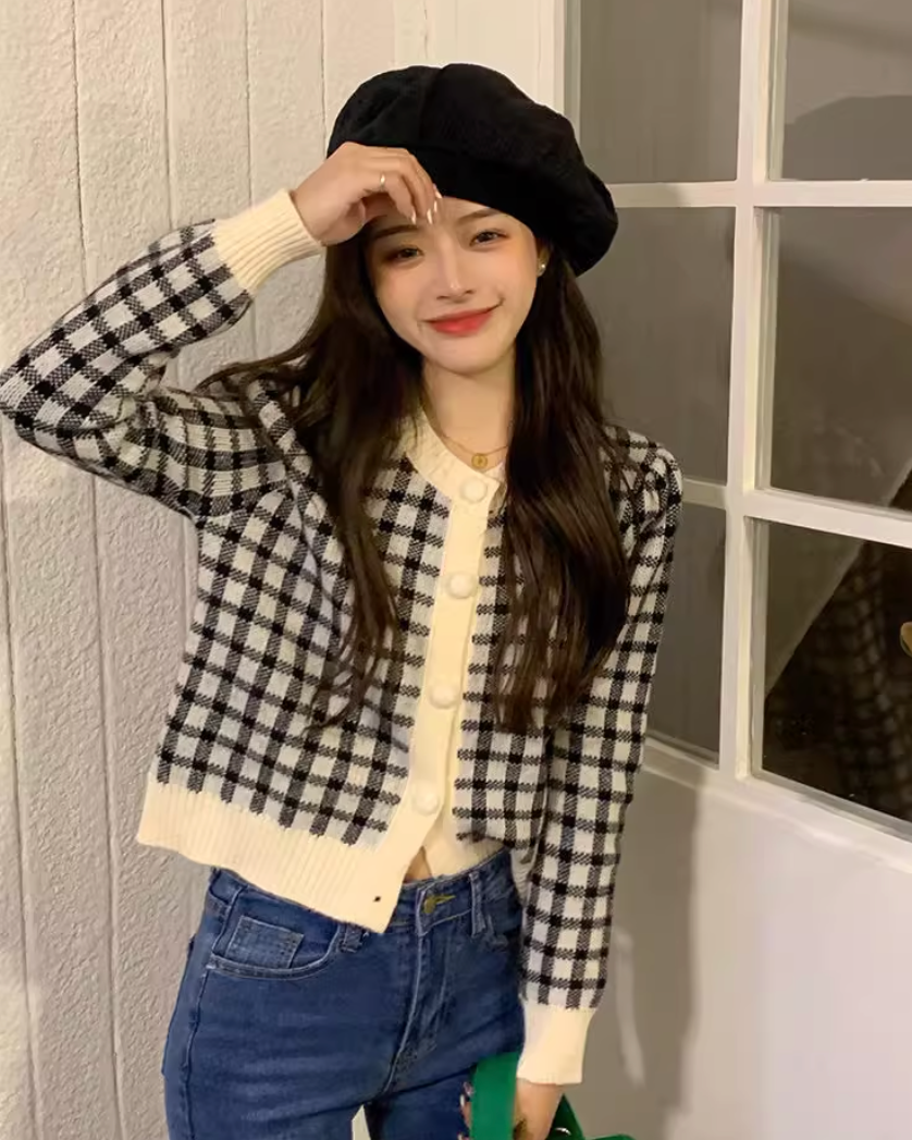 チェック柄ニットカーディガンxプリーツミニスカート セットアップ Mc 209
