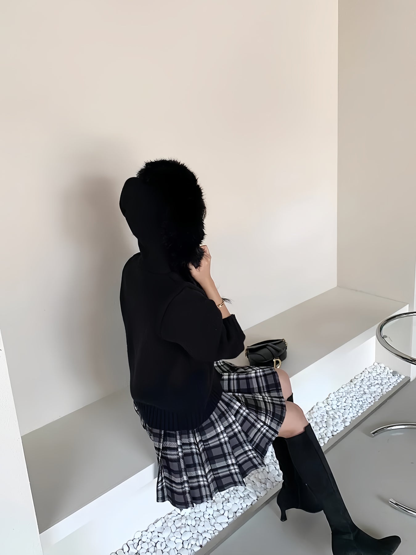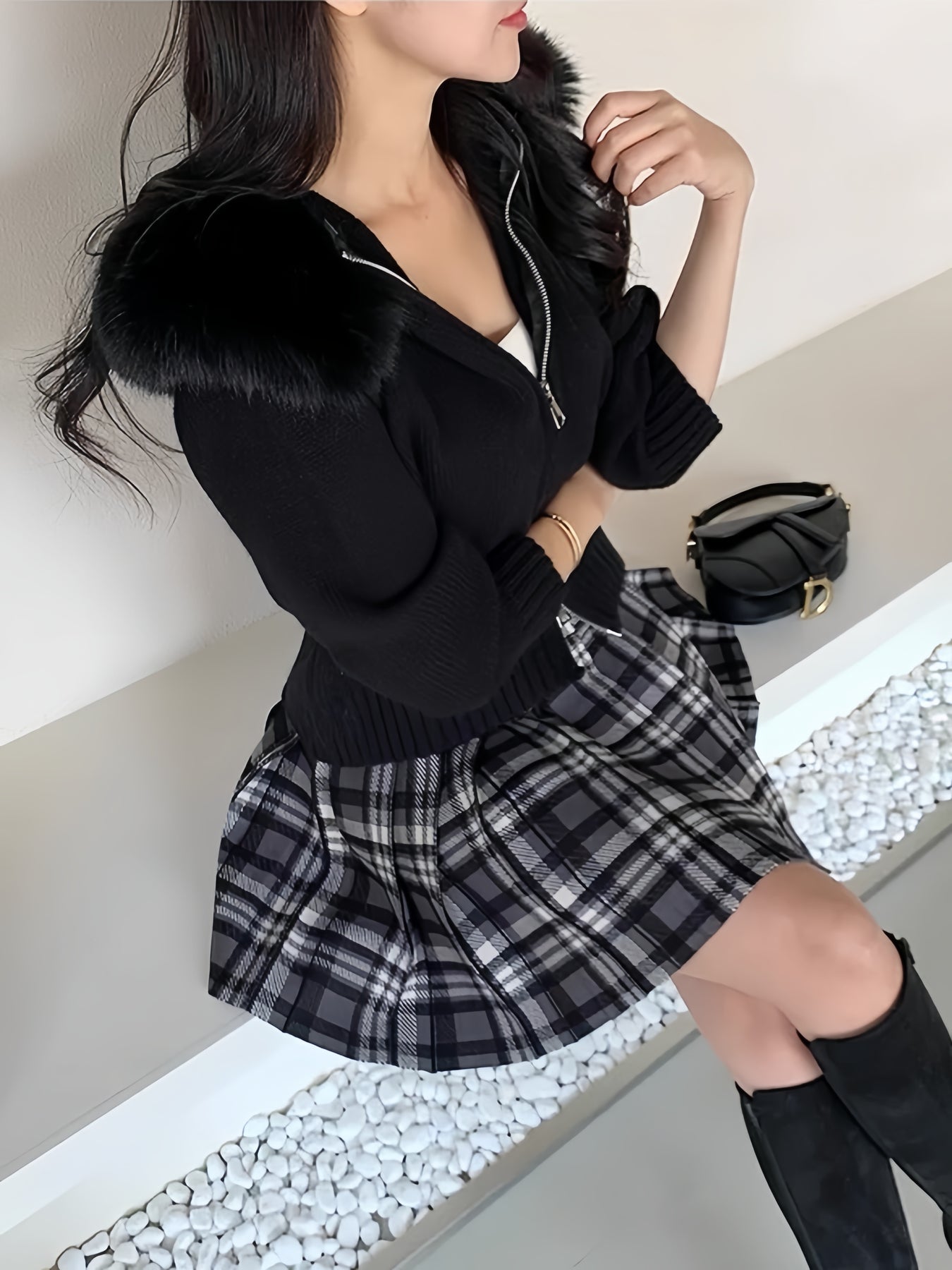 ミニスカートやロングブーツでフェミニンにも◎