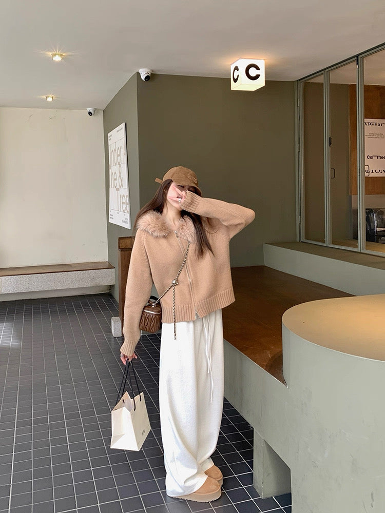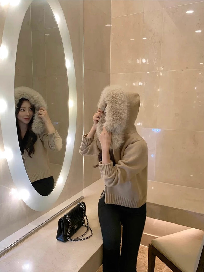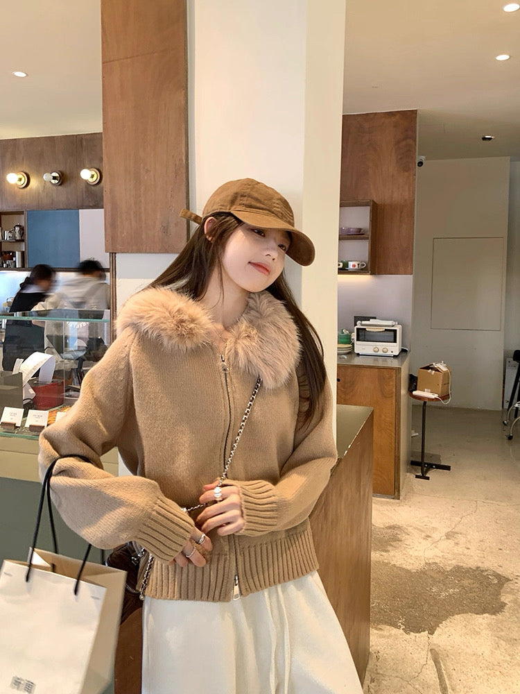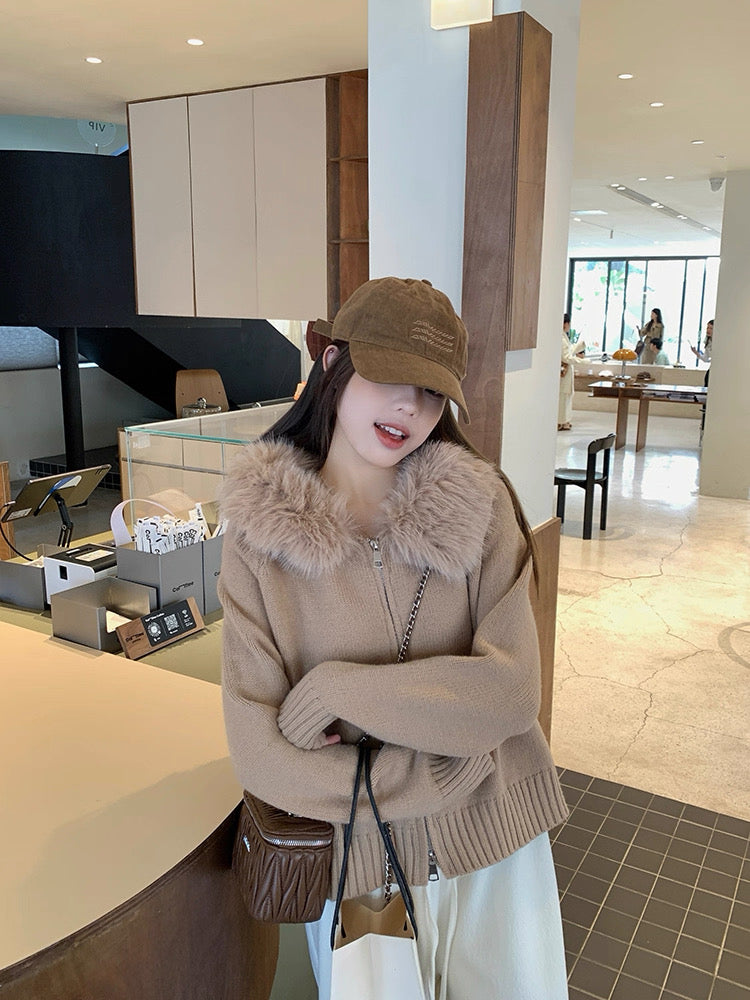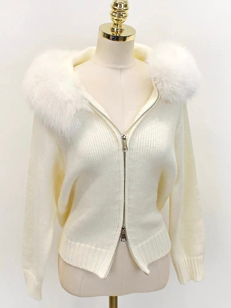 ファーカラーダブルジップニットパーカー Mc 556