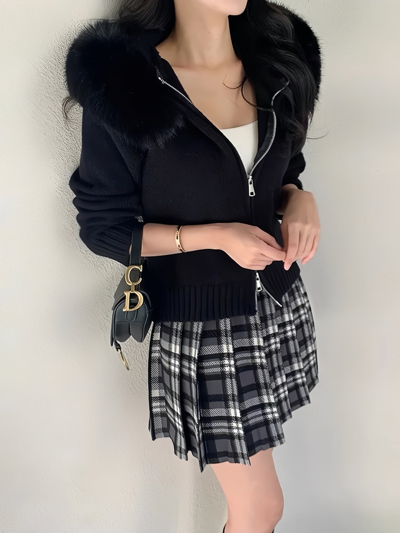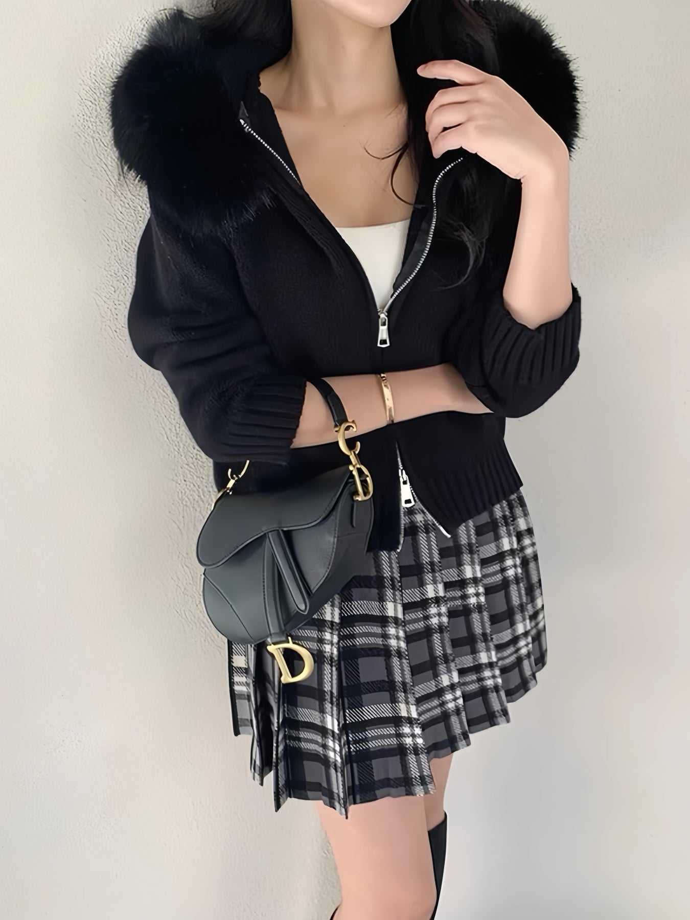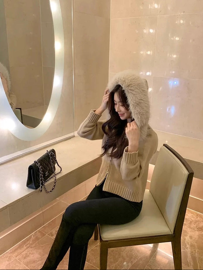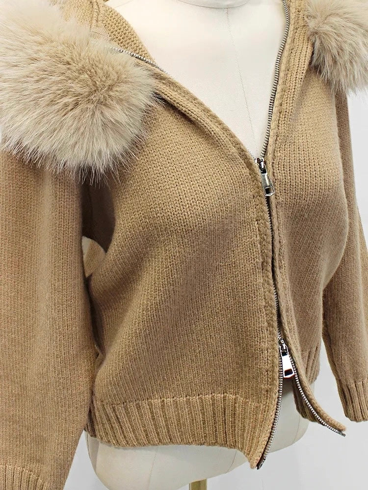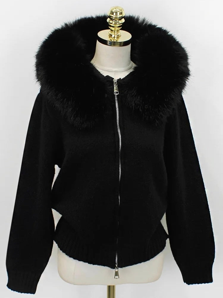 ファーカラーダブルジップニットパーカー Mc 556