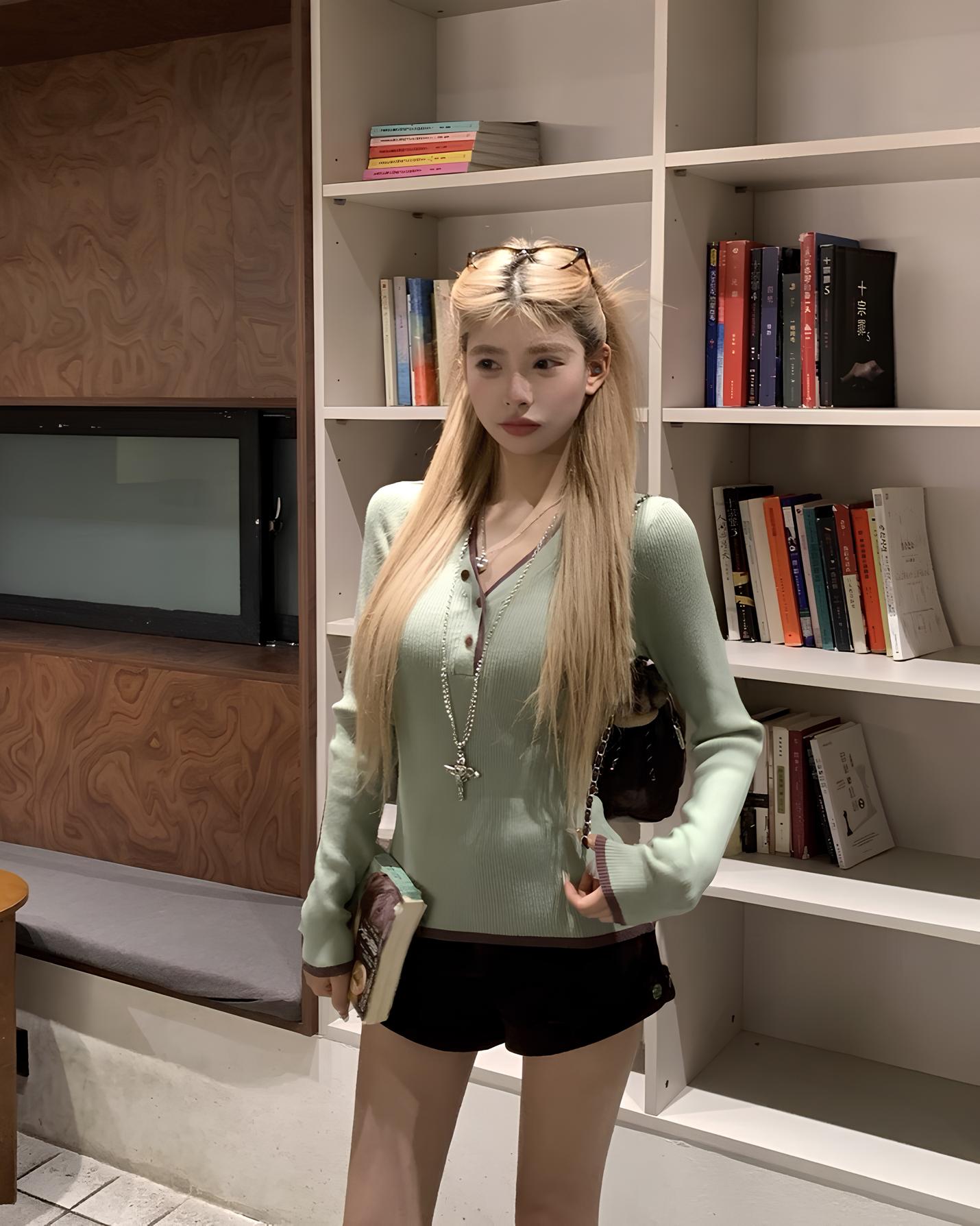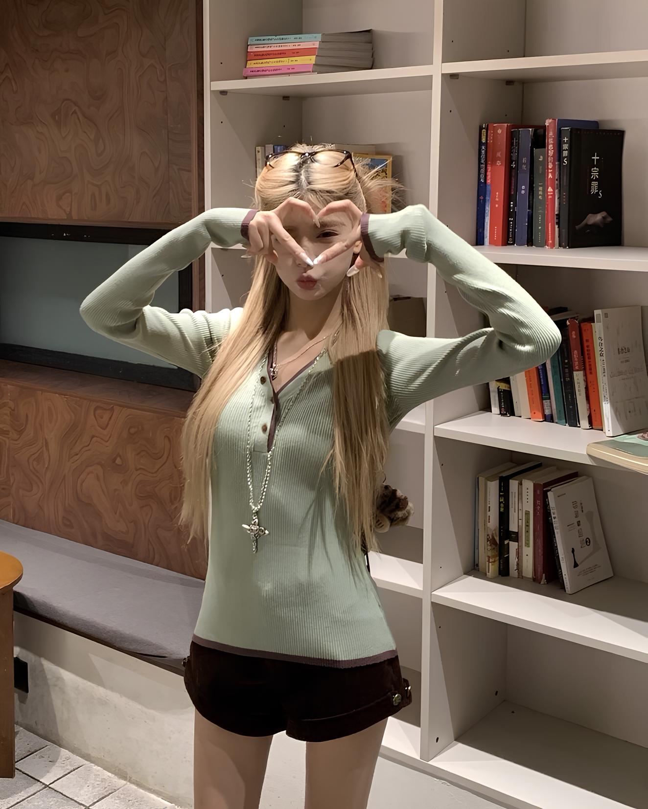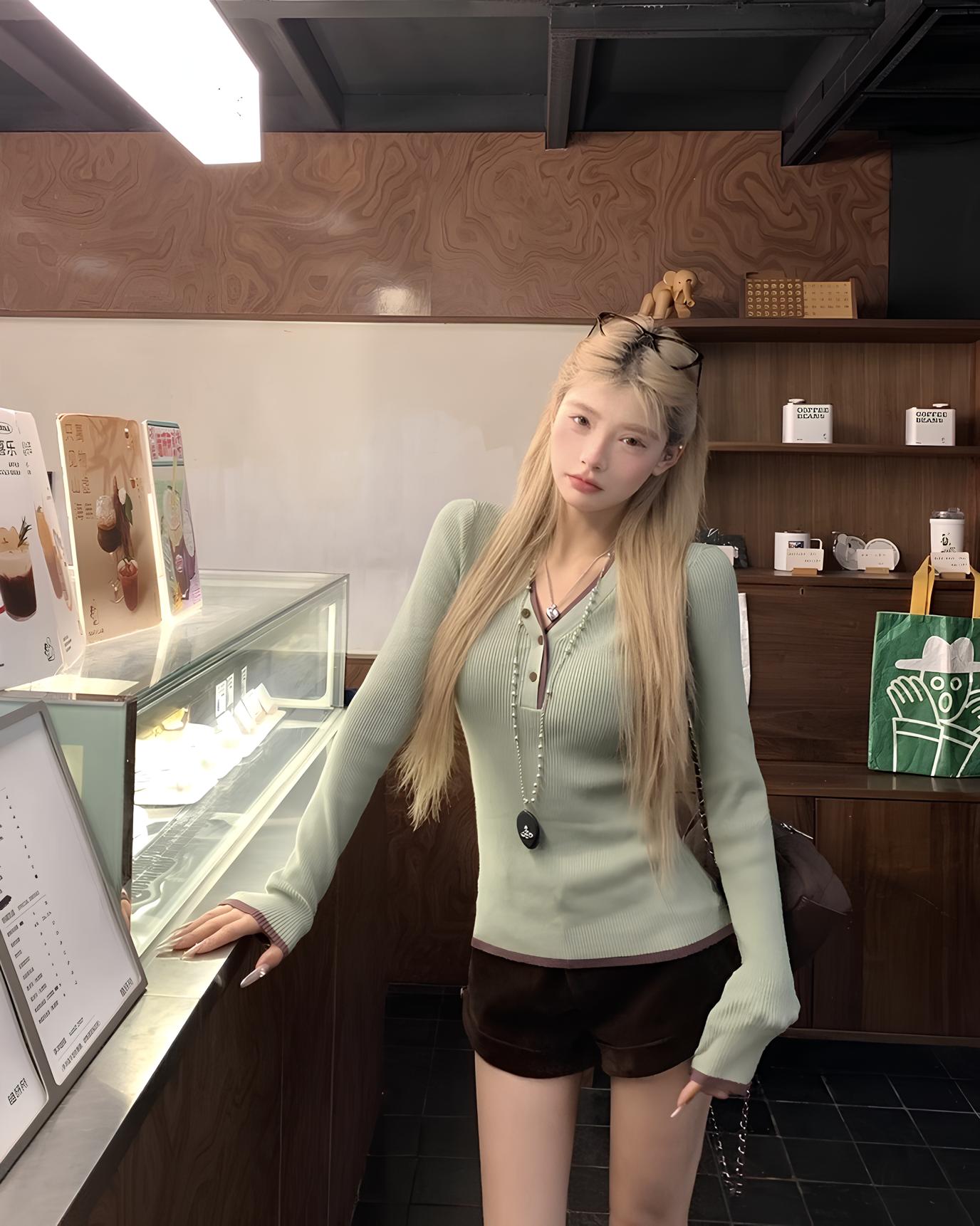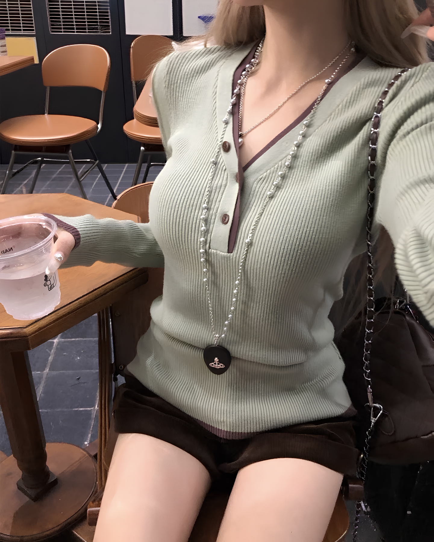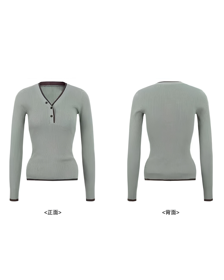 2way配色ヘンリーネックリブニットトップス Mc 643