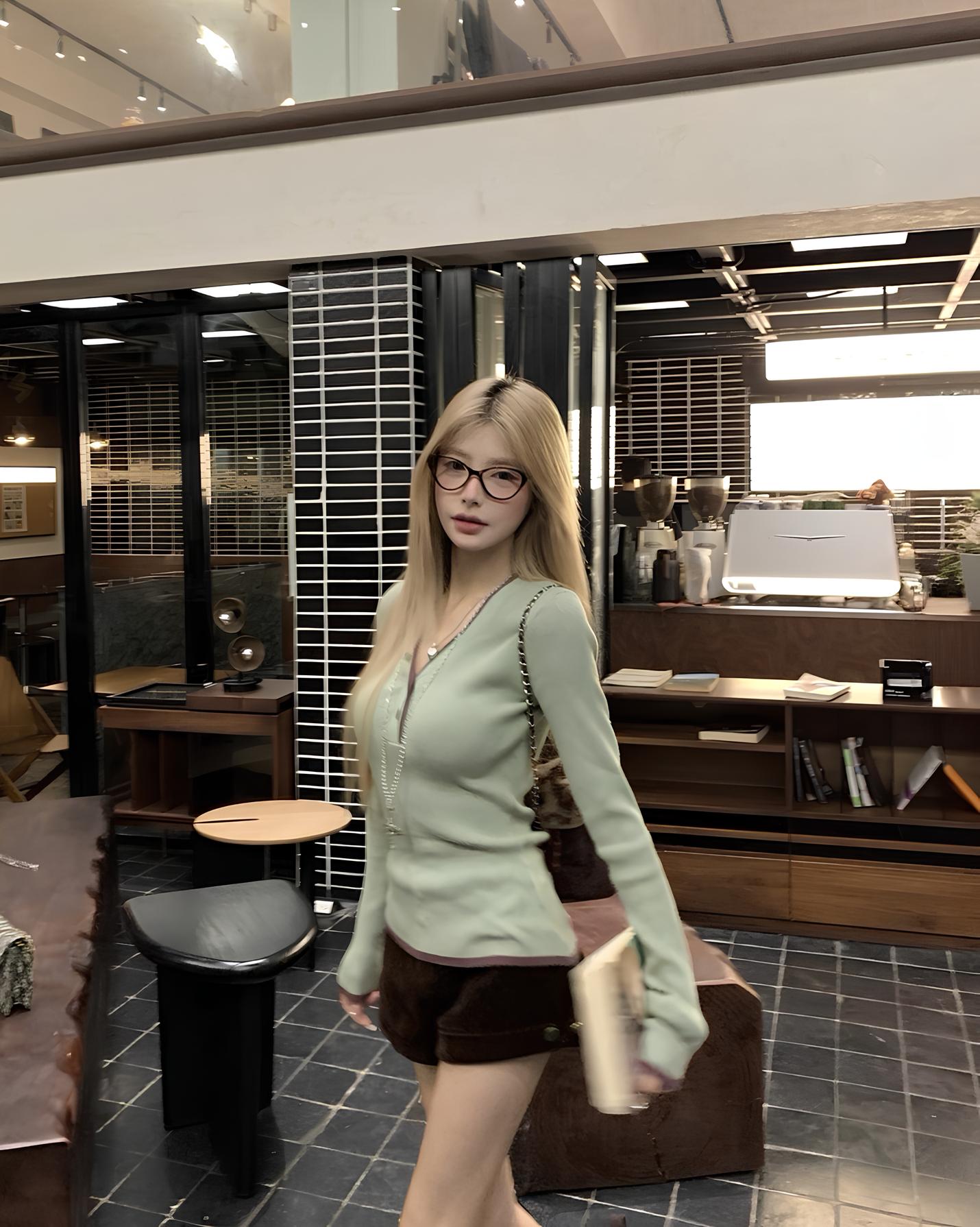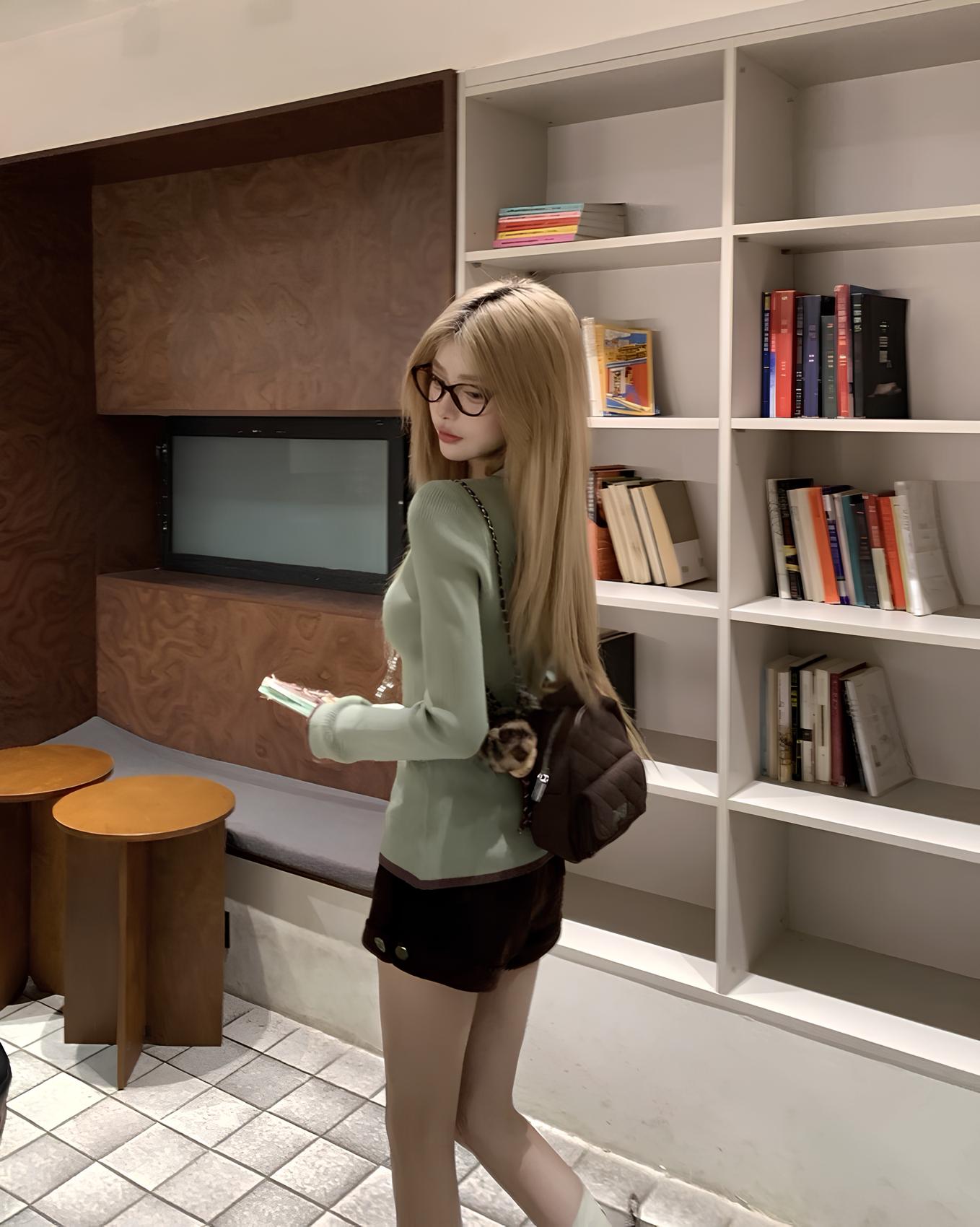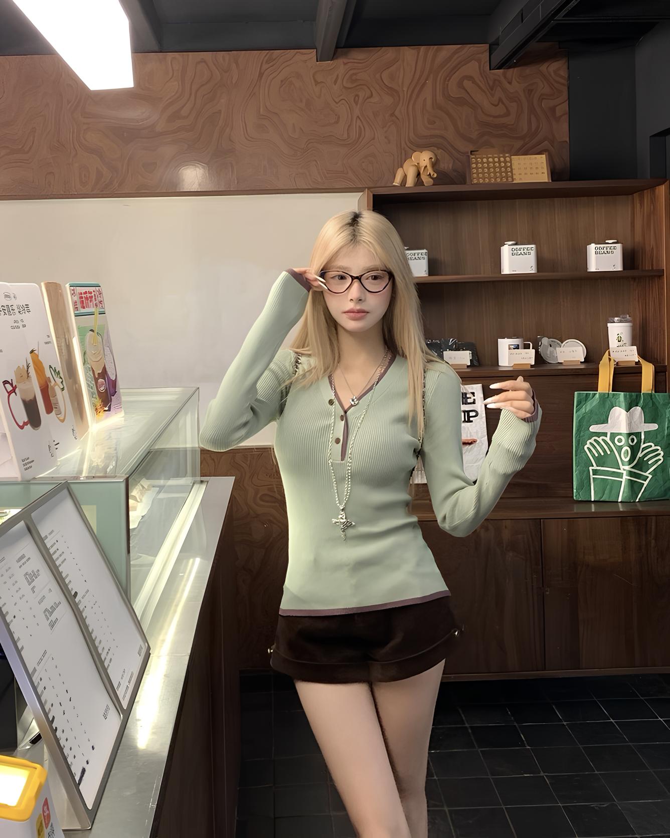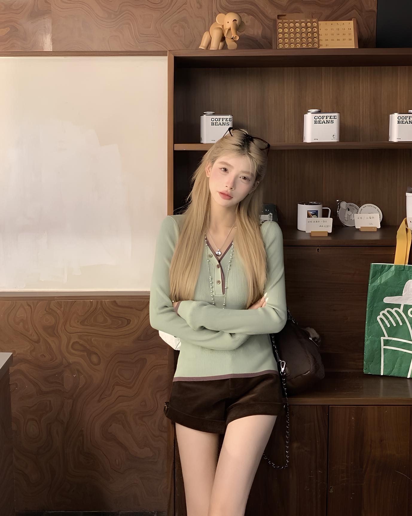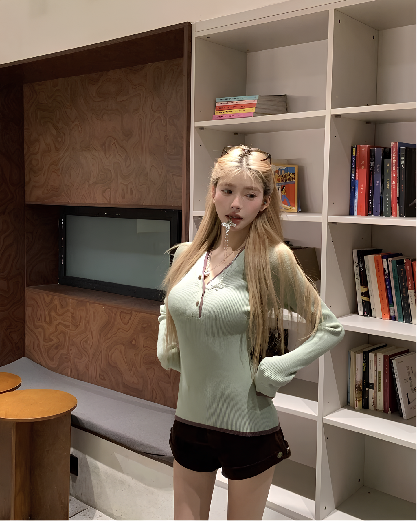2way配色ヘンリーネックリブニットトップス Mc 643