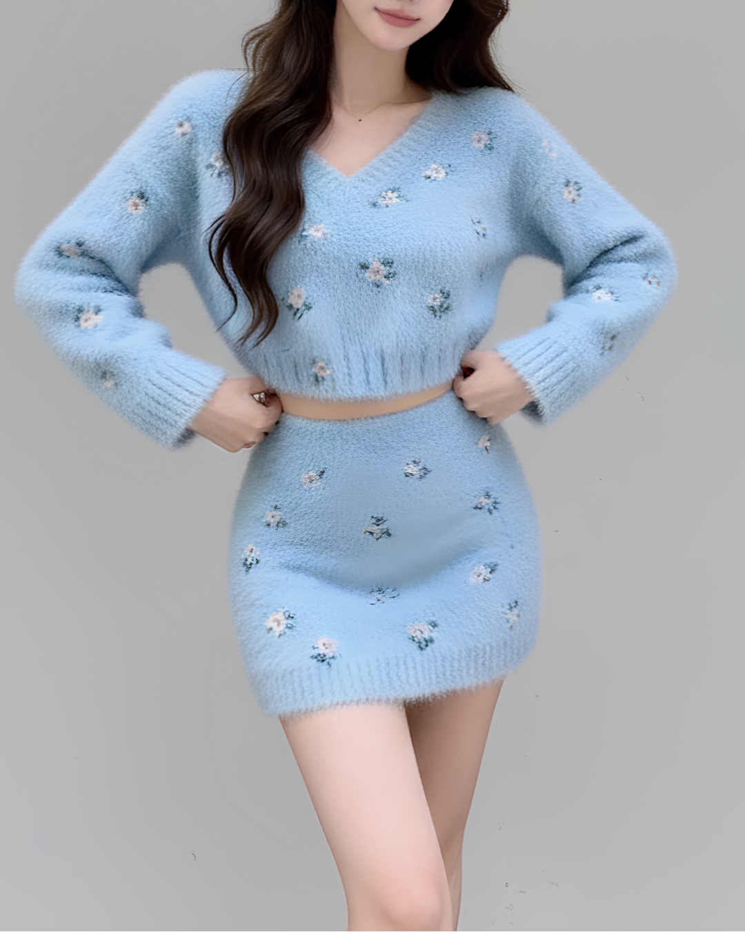 ミニフラワーレイヤードカーデトップスセット Mc 730