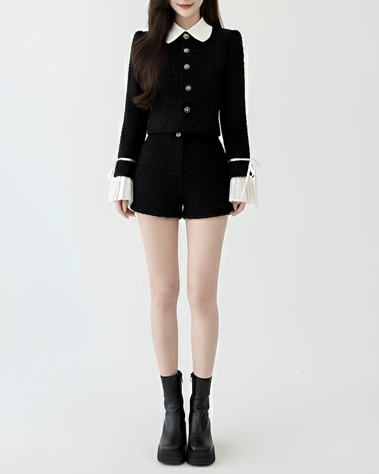 白襟とフレアカフスが映える大人ガーリーなセットアップ💗