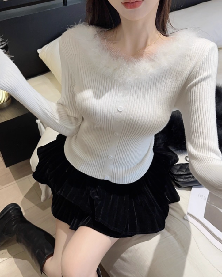 ネックラインと袖口にポイントで施した愛らしいファーが、